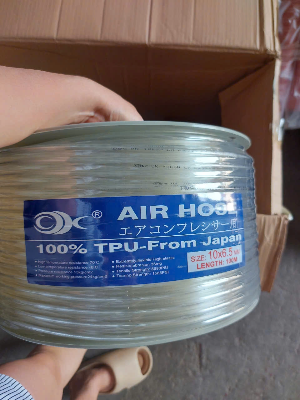 Cấu tạo: Dây hơi khí nén Pu phi 10×6.5 cuộn dài 100m. Ống được sản xuất trên dây chuyền công nghệ hiện đại, được làm từ hàng chất lượng cao với nguyên liệu nhập khẩu hoàn toàn từ Hàn Quốc và Nhật Bản. Giúp sản phẩm dẻo dai, chịu áp lực tốt và bền bỉ theo thời gian.