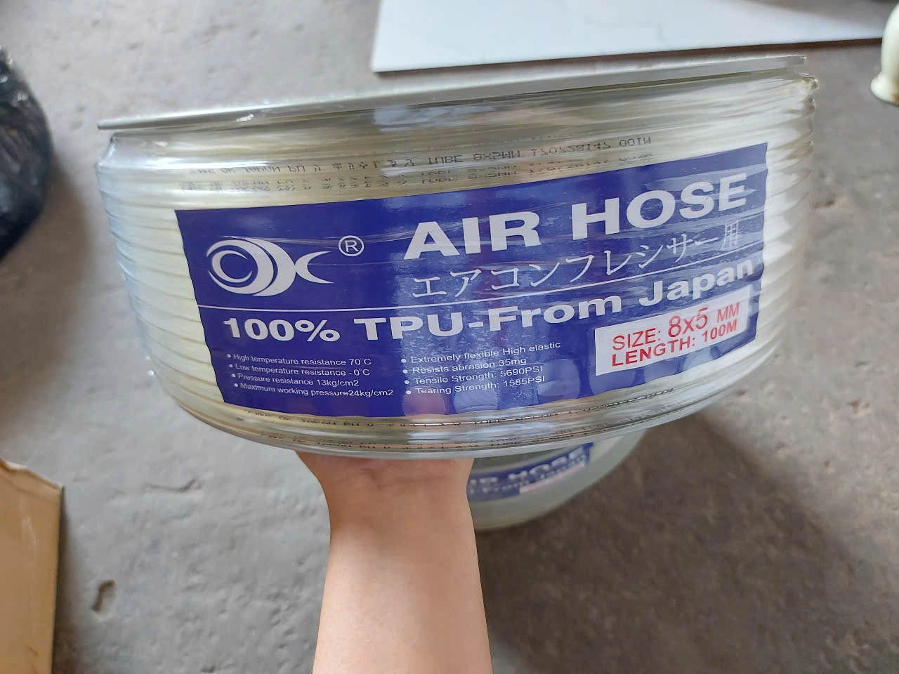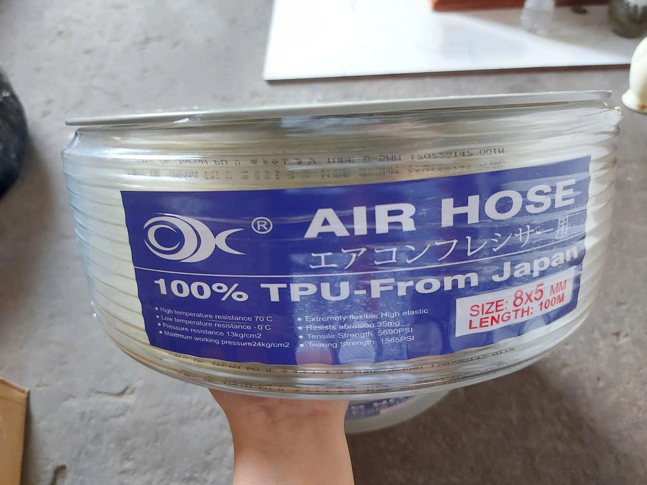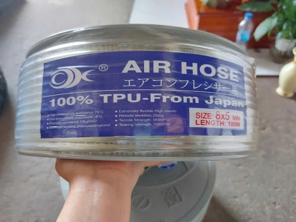 Cấu tạo: Dây hơi khí nén Pu phi 8x5mm cuộn dài 100m. Ống được sản xuất trên dây chuyền công nghệ hiện đại, được làm từ hàng chất lượng cao với nguyên liệu nhập khẩu hoàn toàn từ Hàn Quốc và Nhật Bản. Giúp sản phẩm dẻo dai, chịu áp lực tốt và bền bỉ theo thời gian.