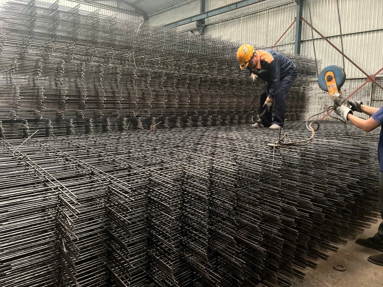 Thép cuộn nguyên liệu nhập về nhà máy được làm sạch -> kéo nguội -> tạo gân -> nắn thẳng -> cắt ra kích thước -> hàn tiếp điểm áp lực -> lưới thành phẩm -> kiểm tra chất lượng -> xuất cho khách hàng.