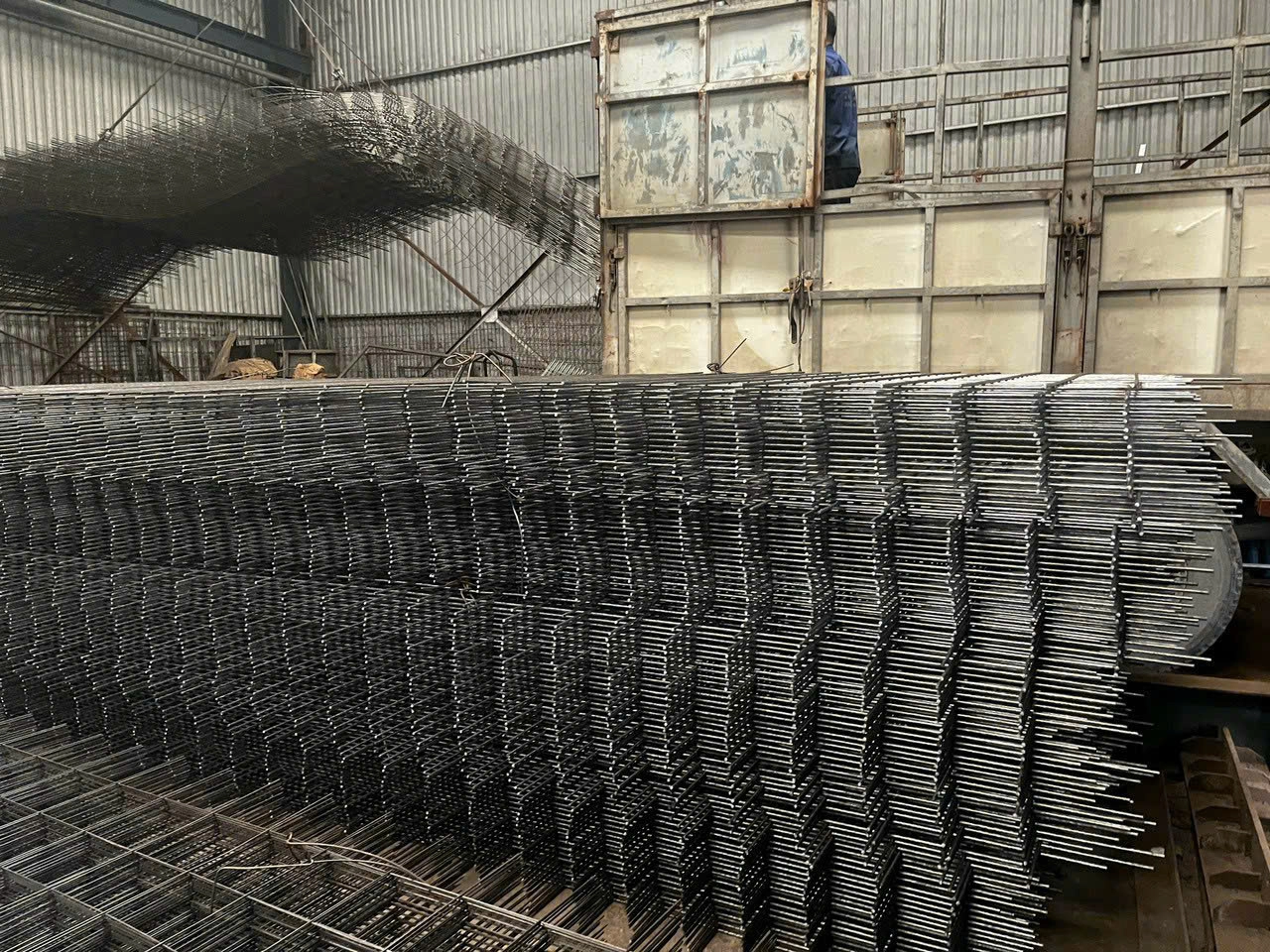 Thép được hàn dưới máy hàn tại các điểm giao nhau nên tạo thành khung thép chắc chắn.