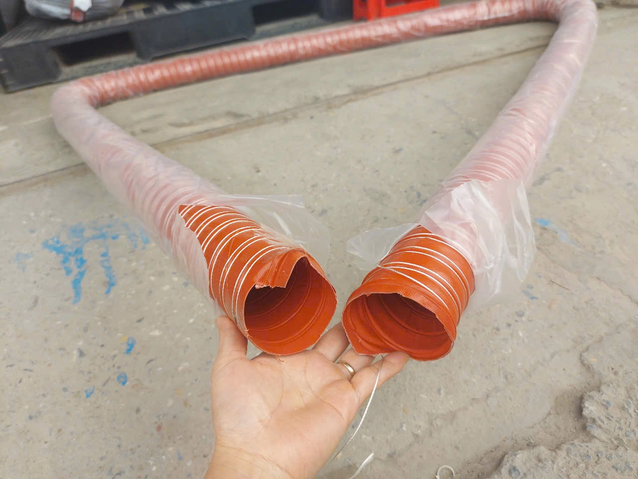 Ống thoát hơi nóng máy sấy, lò hơi hay còn được gọi với tên: Ống silicone chịu nhiệt độ cao phi 45, ống silicone chống cháy, ống thoát khói lò hơi,…