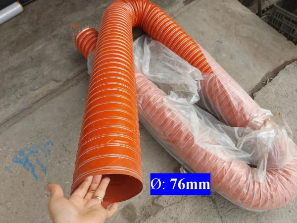 Ống thoát hơi nóng máy sấy, lò hơi hay còn được gọi với tên: Ống silicone chịu nhiệt độ cao phi 76, ống silicone chống cháy, ống thoát khói lò hơi,…