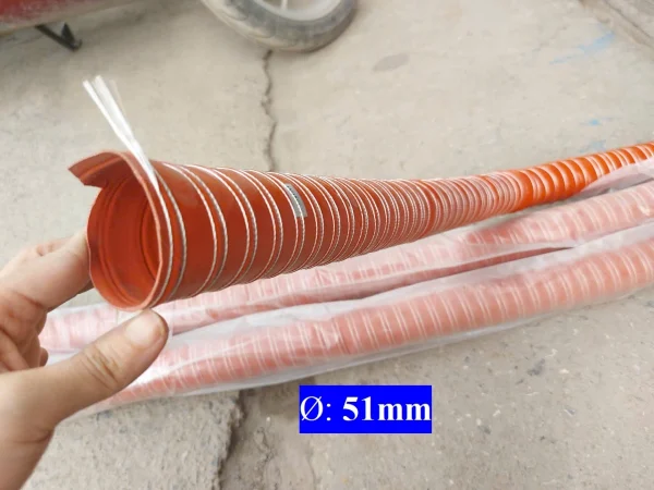 Ống thoát hơi nóng máy sấy, lò hơi hay còn được gọi với tên: Ống silicone chịu nhiệt độ cao phi 51, ống silicone chống cháy, ống thoát khói lò hơi,…