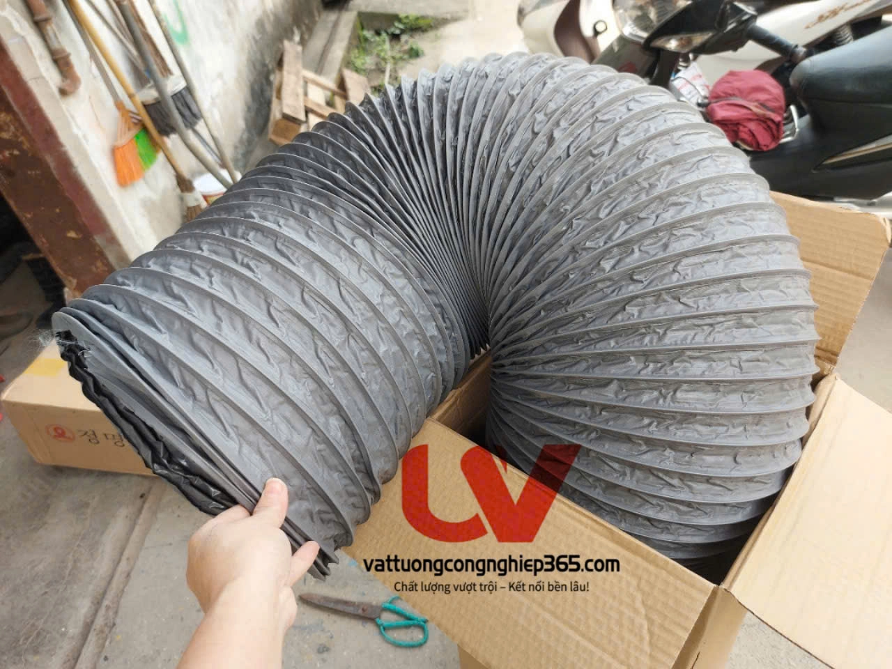 @hinvs09 Ống gió vải mềm lắp quạt hút công nghiệp dùng dẫn khí, thông gió tòa nhà, tầng hầm.