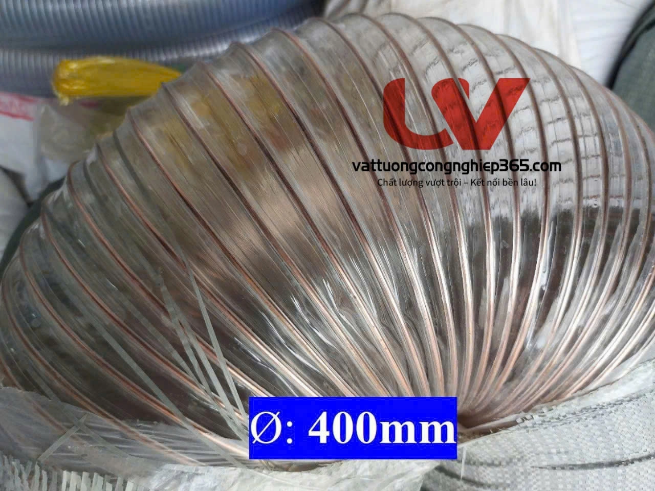 - Tên sản phẩm: Ống hút bụi pu lõi thép mạ đồng Phi 400