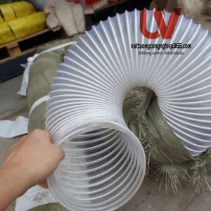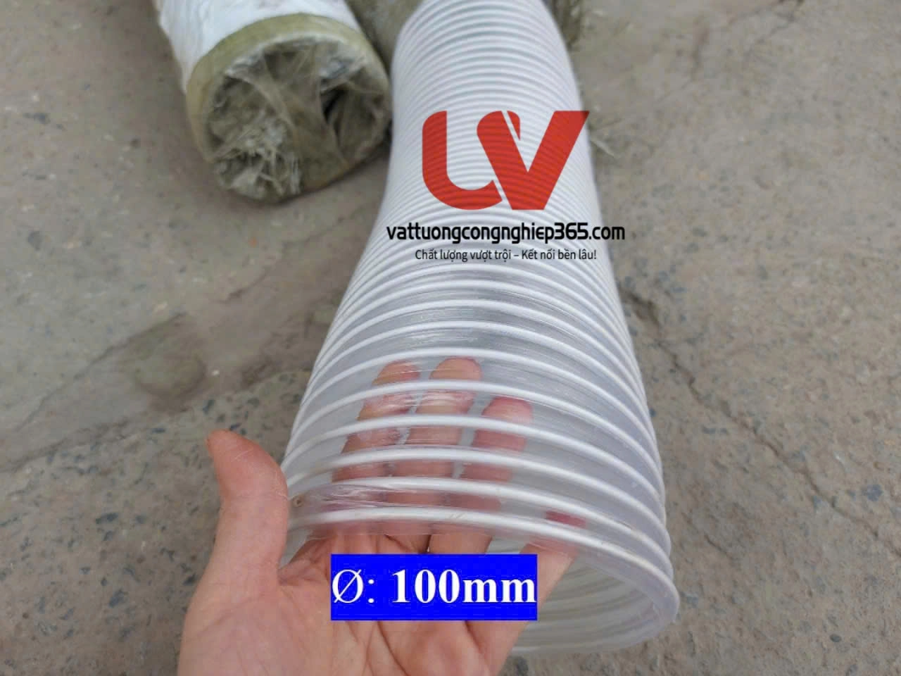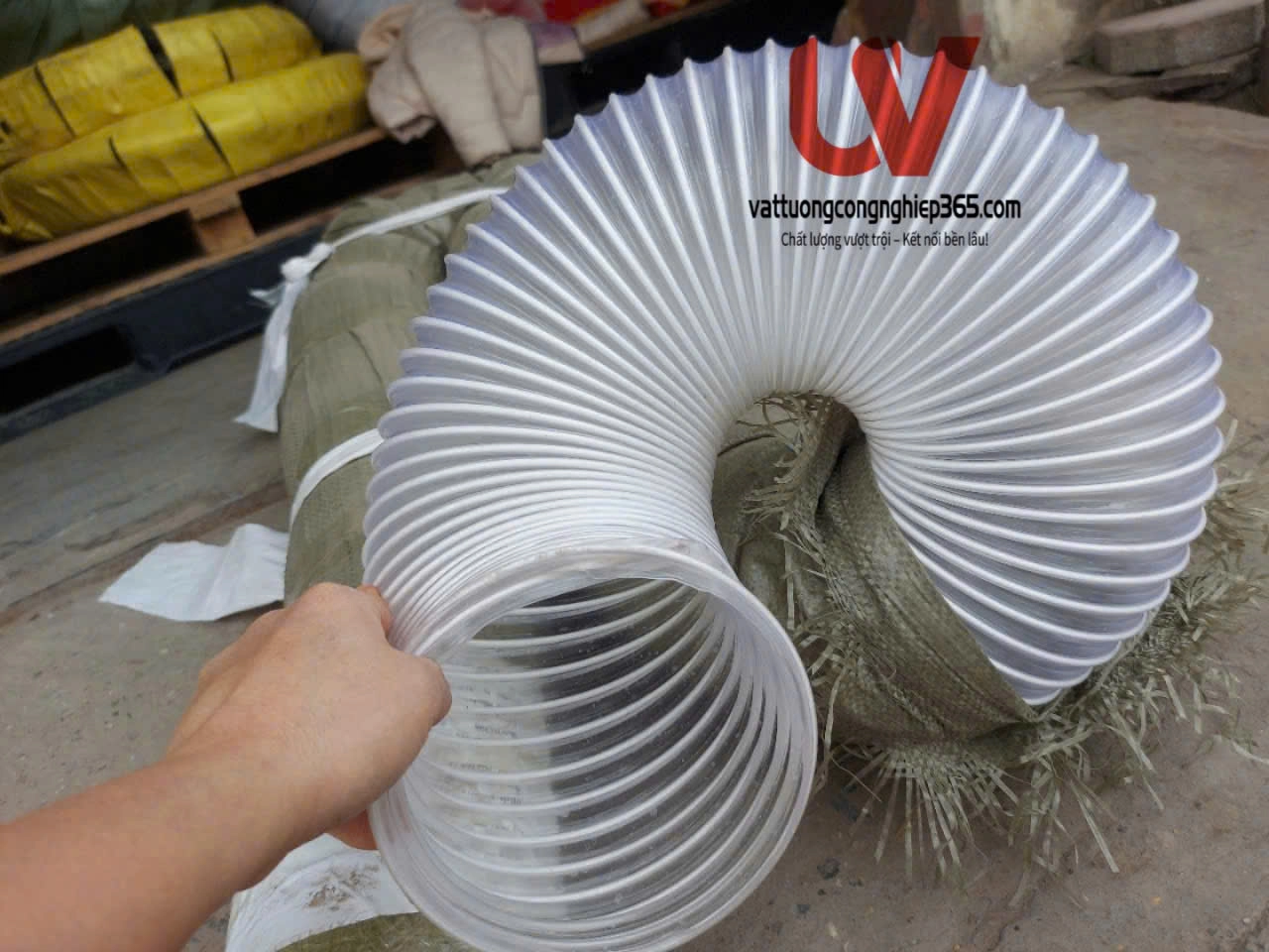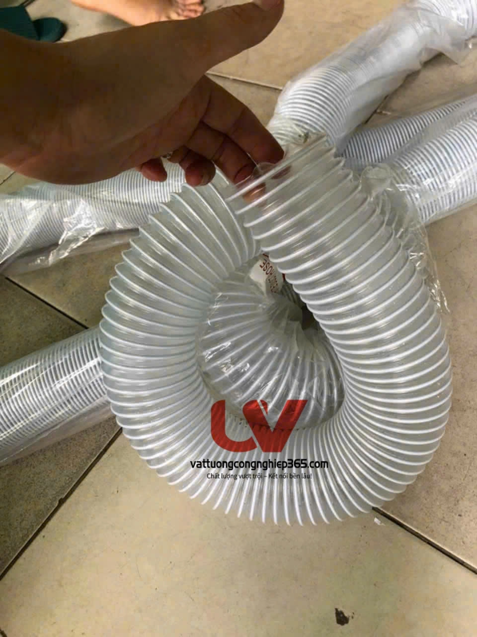Ống hút bụi lõi thép phi 100 hay còn được gọi với tên: Ống hút bụi co giãn đàn hồi, ống gió bụi trắng, ống hút bụi lõi thép bọc nhựa, ống lò xo lõi thép.