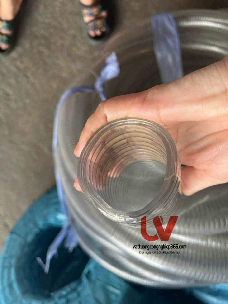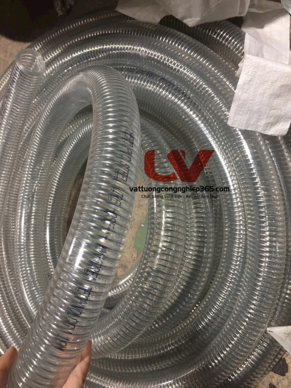 – Về màu sắc: Mang màu trắng của nhựa PVC, trong được bọc sợi thép lò xo.