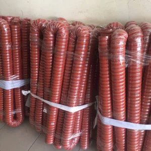 * Cấu tạo: Ống silicone chịu nhiệt được làm từ chất liệu sợi thủy tinh bọc silicone hai lớp kết hợp với sợi cốt dù gia cố bằng dây thép xoắn lò xo bọc ở bên ngoài ống.
