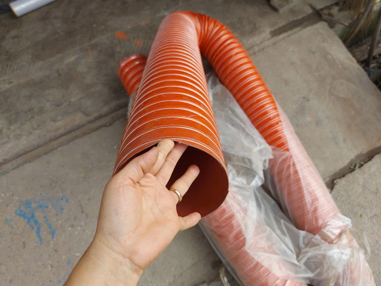 Ống thoát hơi nóng máy sấy, lò hơi hay còn được gọi với tên: Ống silicone chịu nhiệt độ cao phi 102, ống silicone chống cháy, ống thoát khói lò hơi,…